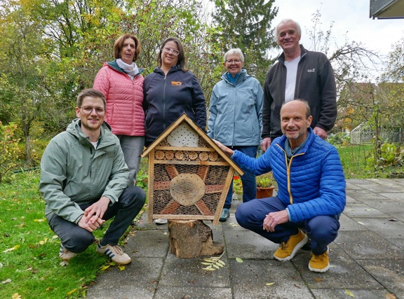 Das freute Matthias Ruf vom Eninger Klima- und Umwelt-Forum, denn schon lange hatte der Verein die Idee, etwas zur Insektenvielfalt auf der Eninger Gemarkung beizutragen. Durch ein vorbildliches Ressourcen-Management und den ehrenamtlichen Einsatz zweier Schreiner konnten mit geringen Materialkosten die ersten Insektenhotels gebaut und aufgestellt werden. Die glücklichen Menschen, die zu diesem Projekt beigetragen haben, strahlten über die gelungene Zusammenarbeit (siehe Foto).